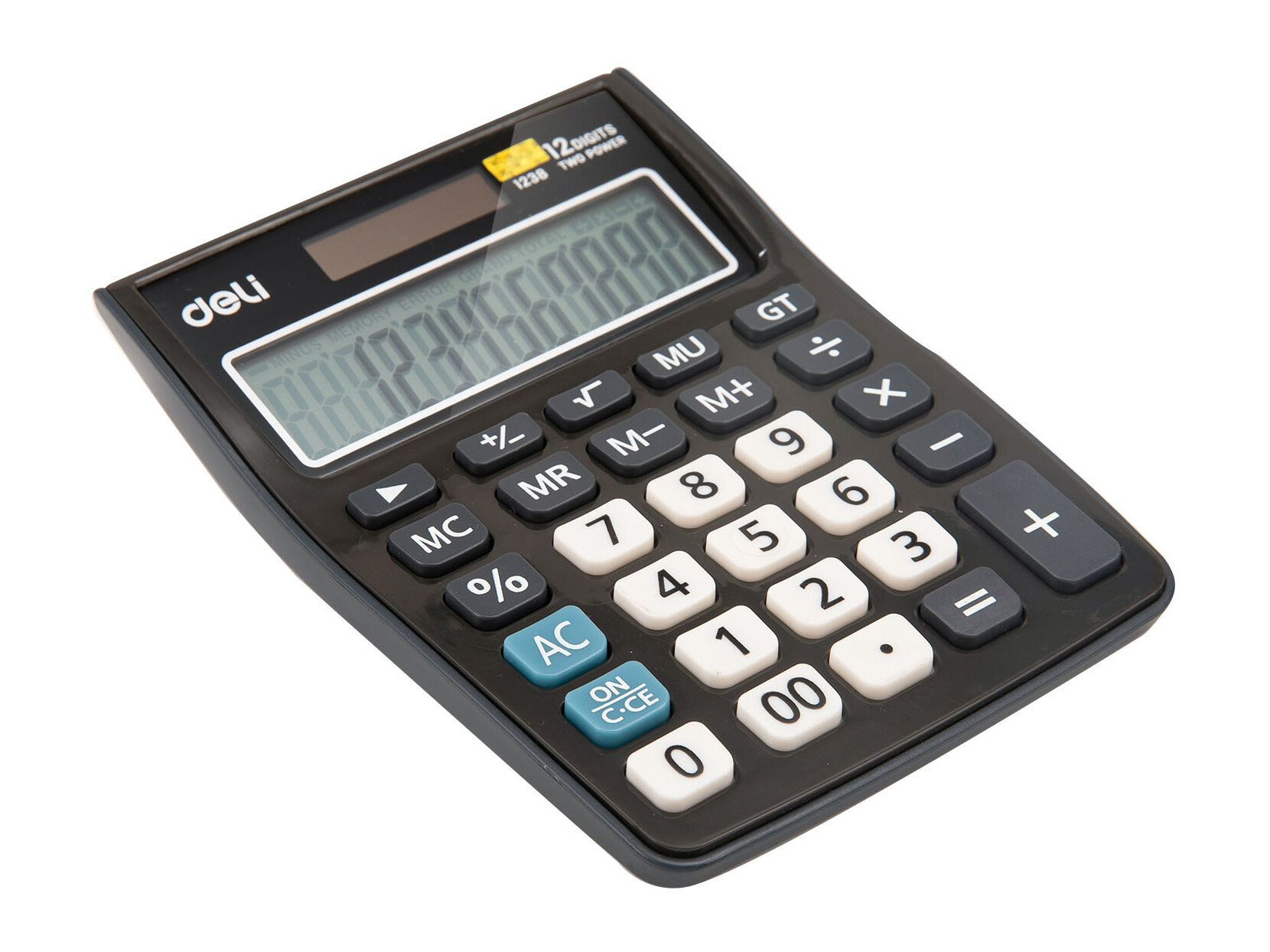 Калькулятор настольный полноразмерный Deli 12раз, дв.питание,сер E1238BLACK