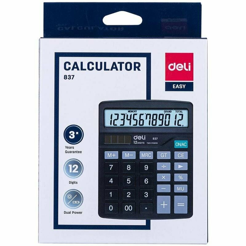 Купить Калькулятор настольн.компакт. Deli E837,12р, дв. питание, 148x120мм, черный