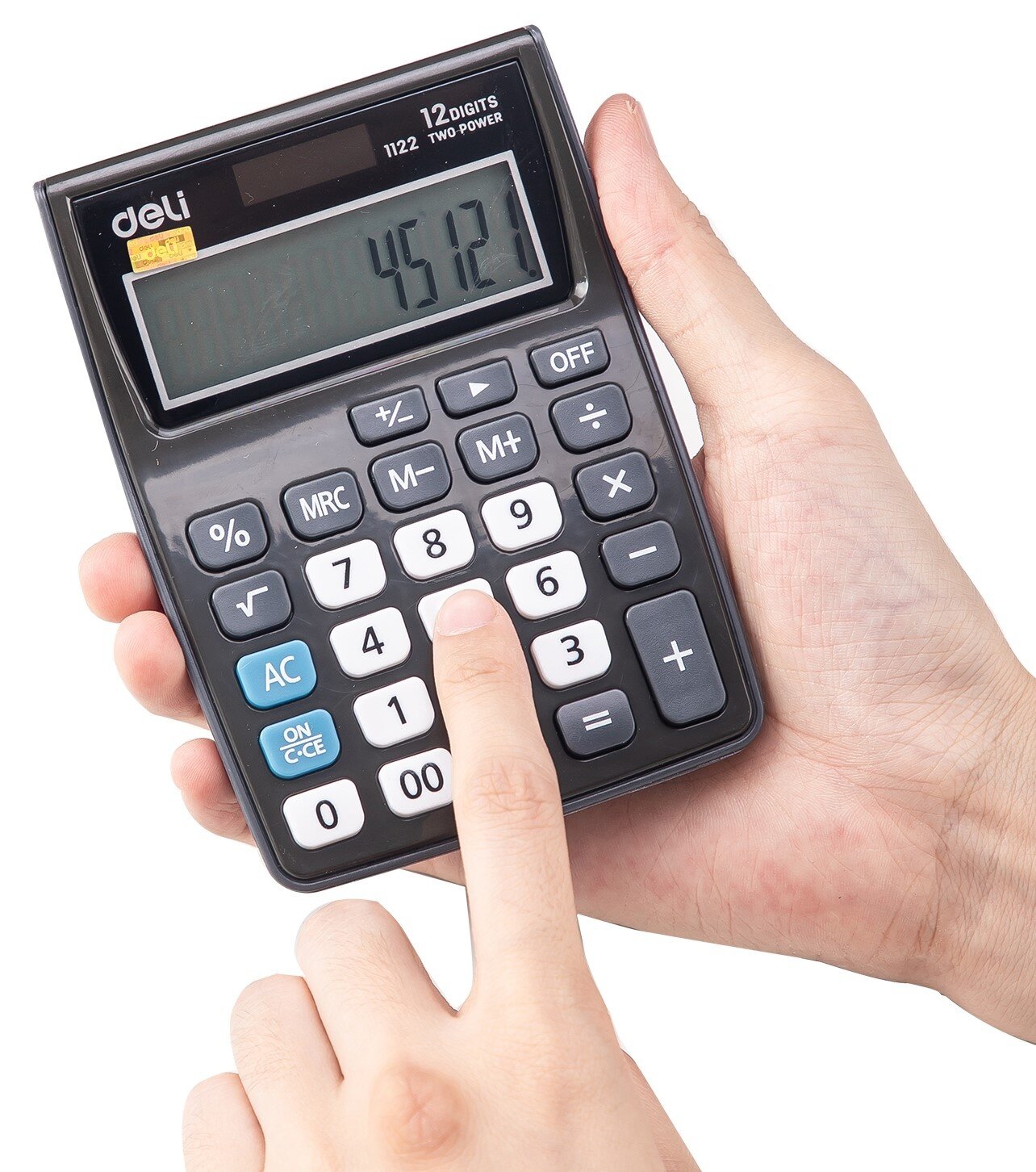 Купить Калькулятор карманный Deli 12 разрядов, LCD-дисплей, двойное питание, серый (E1122Grey)