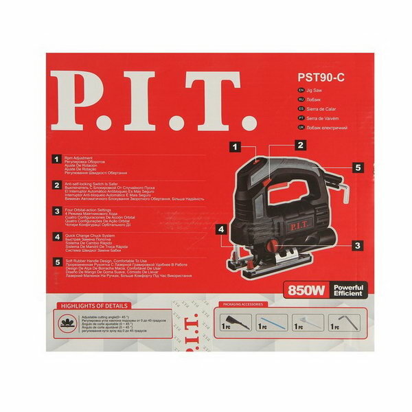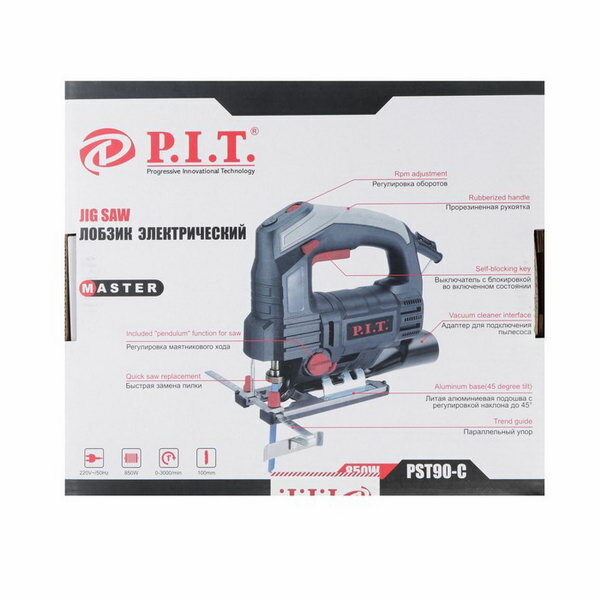 P.I.T. Лобзик P.I.T. PST90-C, 850 Вт, 0-3000 ход/мин, регулировка оборотов, функция обдува