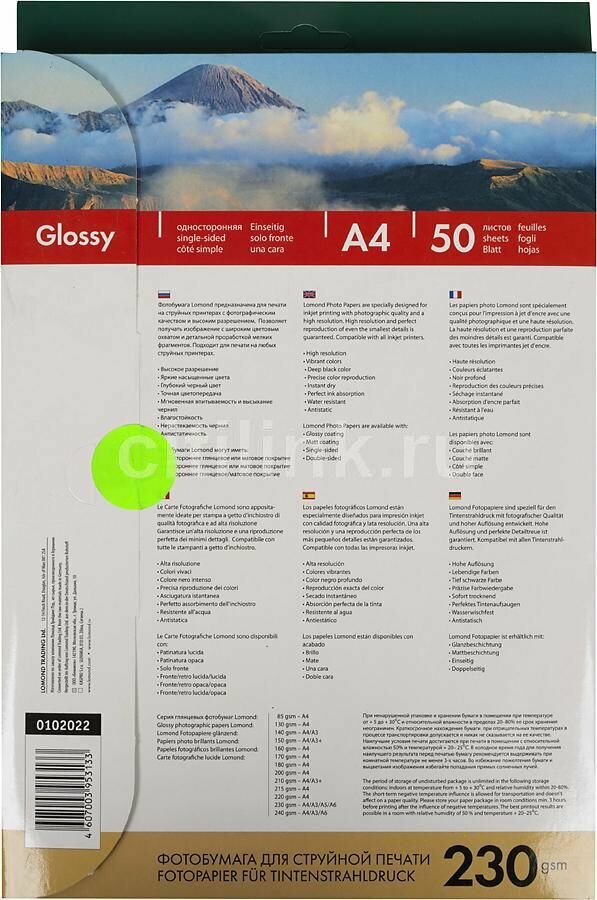 Ниже Вы можете прочитать отзывы на Фотобумага Lomond 0102022 A4/230г/м2/50л./белый глянцевое для струйной печати, ознакомится с подробными характеристиками, посмотреть интересные обзоры и фотографии на Фотобумага Lomond 0102022 A4/230г/м2/50л./белый глянцевое для струйной печати.