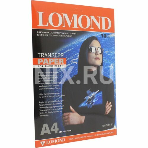 Бумага термотрансферная LOMOND для тёмных тканей А4 10 140 г/м2, 1 шт