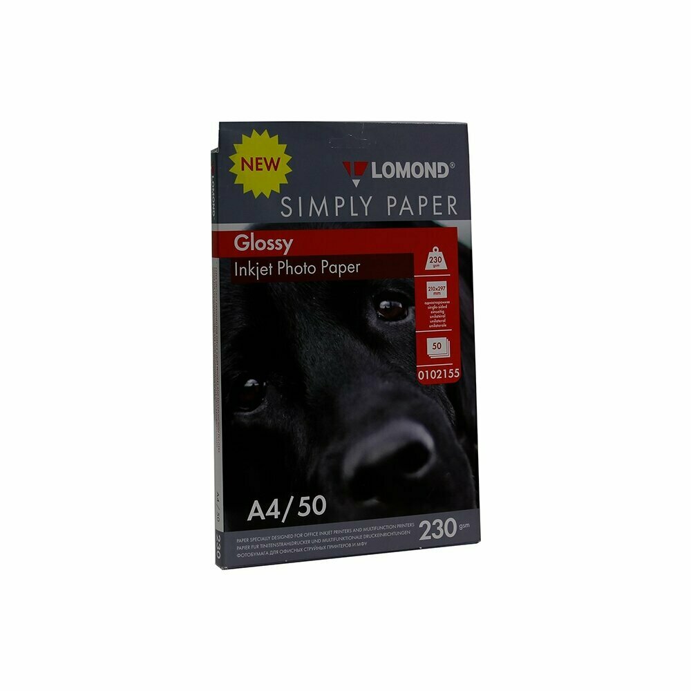 Фотобумага Lomond Simply, A4, 230г/м2, 50л, для струйной печати, белый, покрытие глянцевое [0102155]