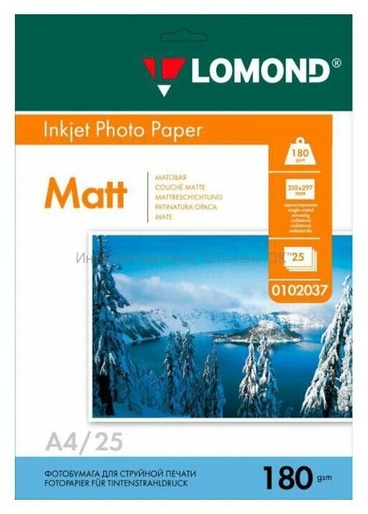 Фотобумага Lomond матовая односторонняя (0102037), A4, 180 г/м2, 25 л.