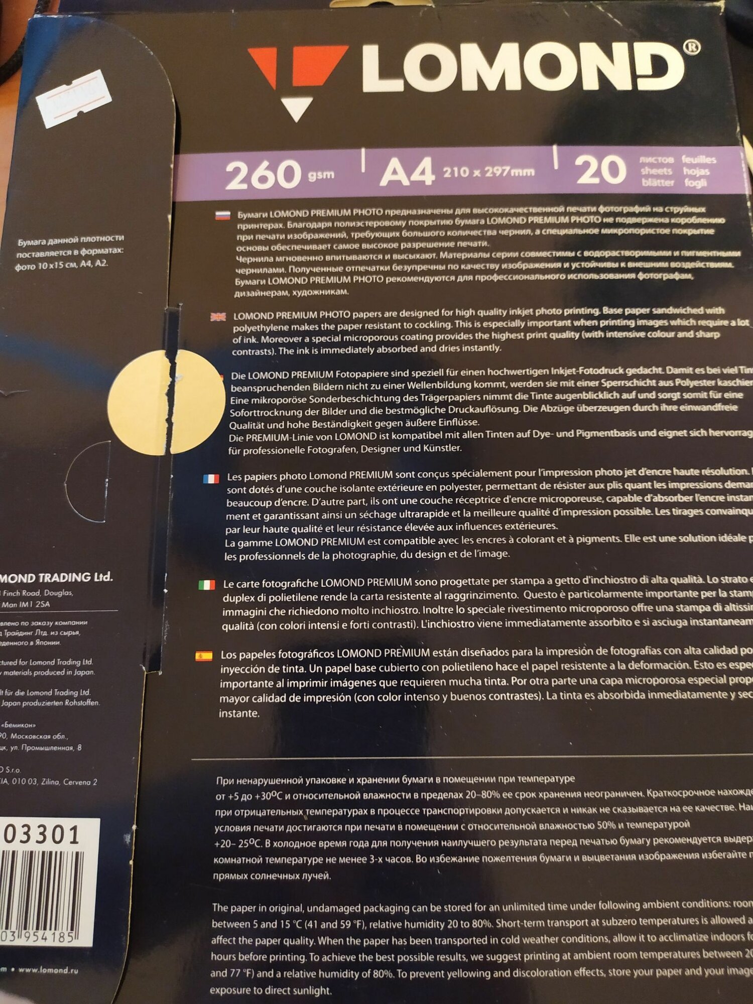 | Дополнительная информация | Лицевая сторона: Полуглянцевая ярко-белая (Semi Glossy Bright). Покрытие: Микропористое. |