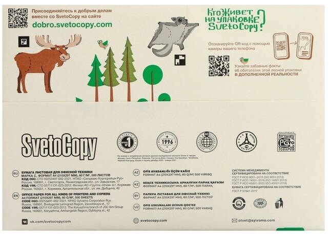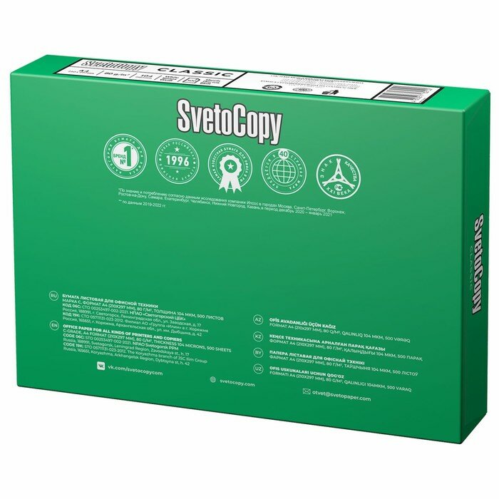 SvetoCopy Бумага А4 500 л, Светокопи, 80 г/м2, белизна 146% CIE, класс C