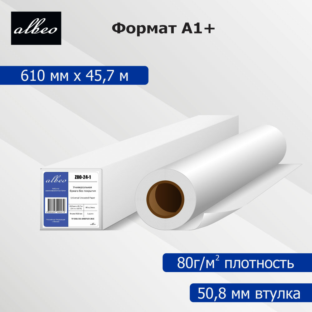 Бумага 610мм 80г/м2 45,7м втулка 50,8мм Albeo Z80-24-1 Универсальная без покрытия