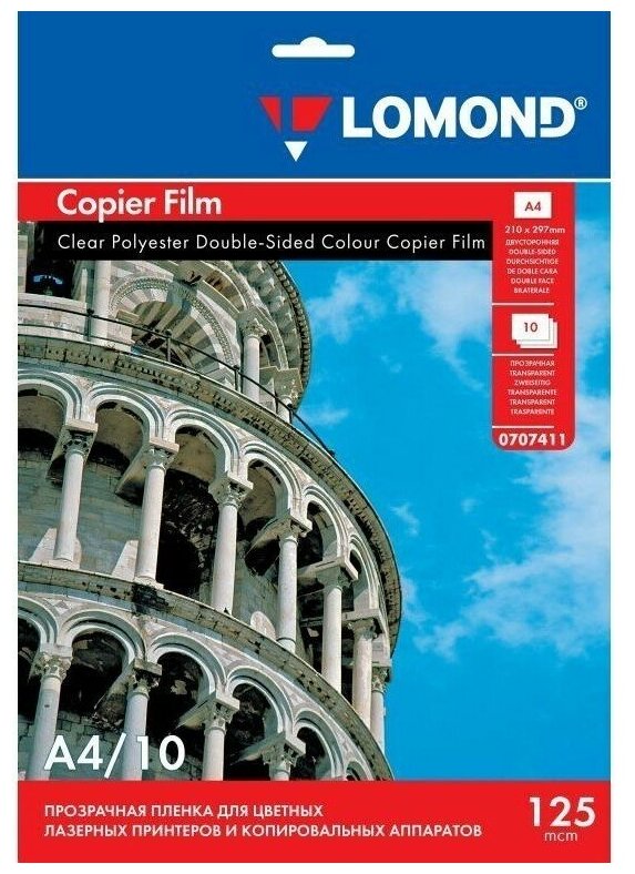 Пленка для лазерной печати Lomond А4 белая двусторонняя для цветных лазерных принтеров (10 листов) 125 мкм (0707461) глянцевая