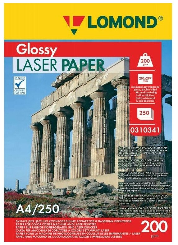 Бумага A4 Lomond глянцевая двухсторонняя для лазерной печати 200г/м2 250л (0310341) .