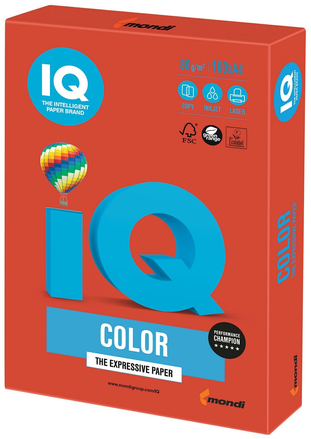 Купить Бумага цветная IQ color, А4, 80 г/м2, 100 л., интенсив, кораллово-красная, CO44