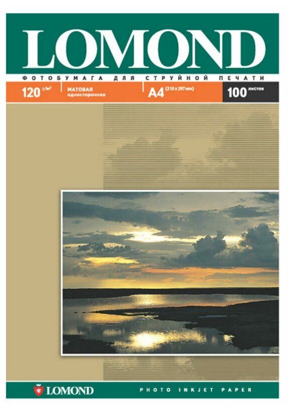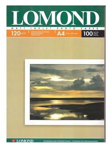 Фотобумага матовая, А4, 120 г/м2, односторонняя, 100 листов, LOMOND, 0102003 1 шт .