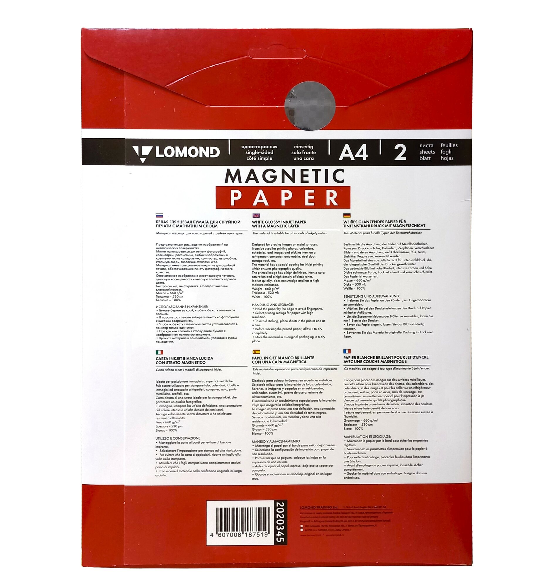 Lomond 2020345 "Magnetic" глянцевая бумага с магнитным слоем, 660 г м2, A4 2 , 530 мкм LMT53