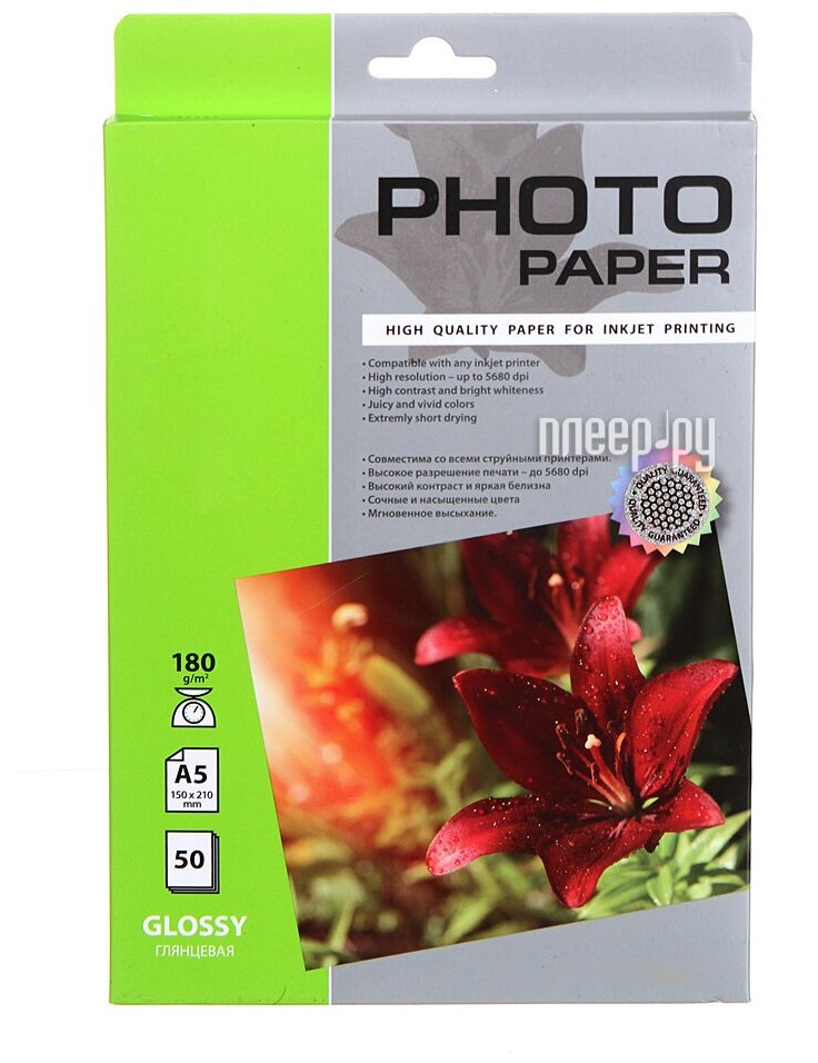 Фотобумага A5 Cactus 180г/м2 50л CS-GA518050 Глянцевая