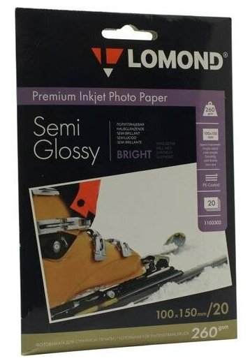 Фотобумага Lomond 1103302 10x15/260г/м2/20 л/белый, полуглянцевая, для струйной печати
