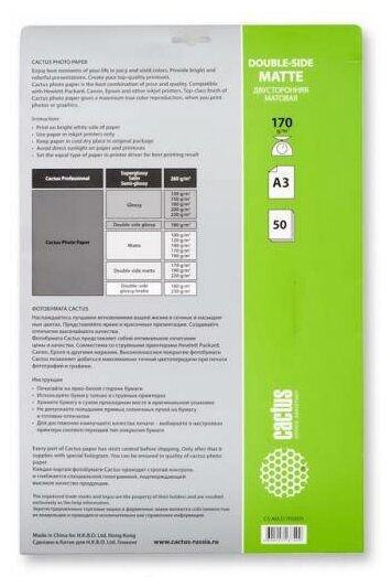 Фотобумага Cactus CS-MA317050DS, матовая, А3, 170 г/м2, 50 листов