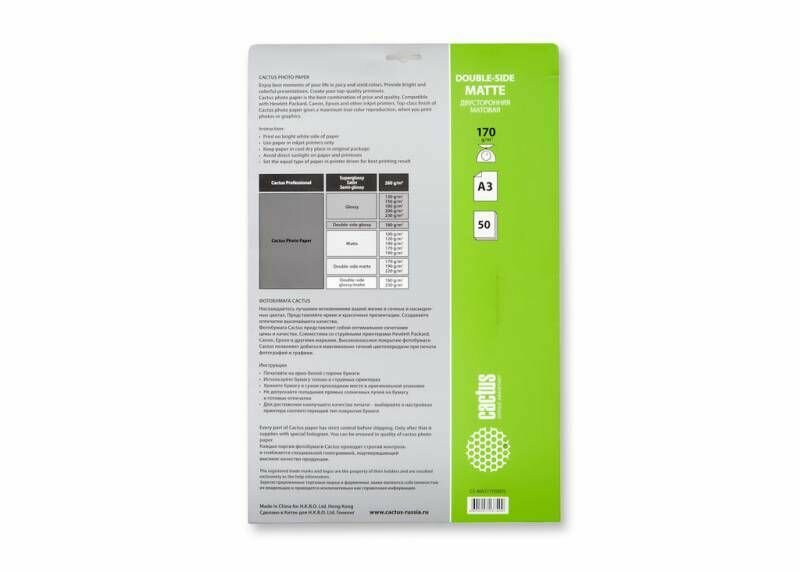 Купить Фотобумага Cactus CS-MA317050DS, матовая, А3, 170 г/м2, 50 листов