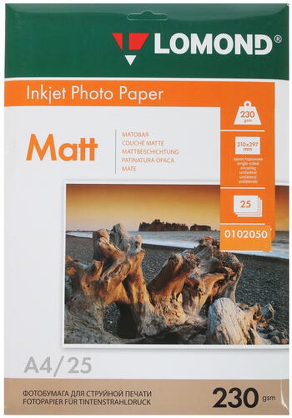 0102050 бумага LOMOND (A4, 230гр, 25л) Photo Матовая , одностор.