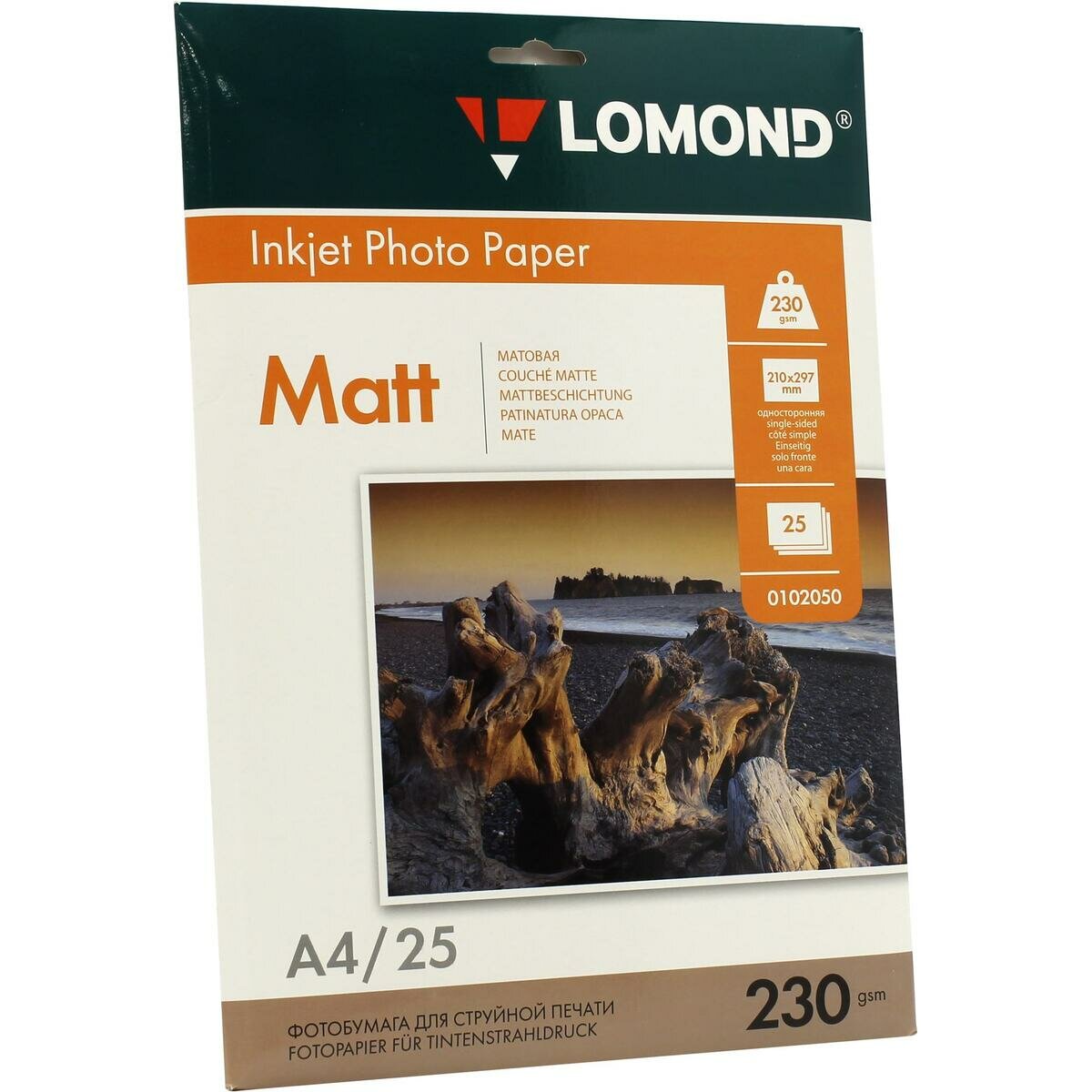 Фотобумага для струйной печати А4, 25 листов LOMOND, 230 г/м2, односторонняя, матовая (0102050)