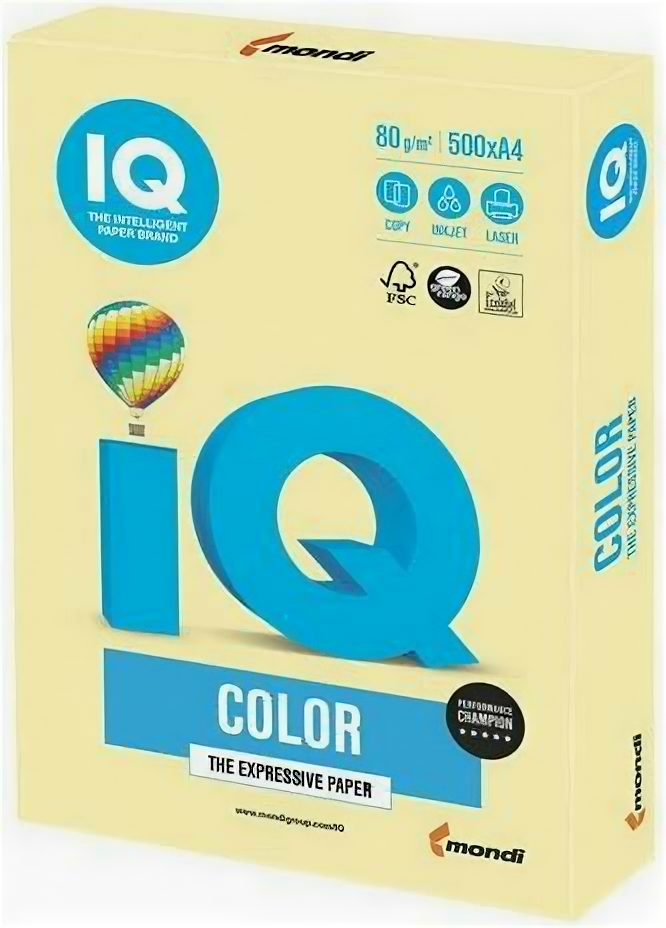 Ниже Вы можете прочитать отзывы на Бумага IQ color, А4, 80 г/м2, 500 л., пастель, желтая, YE23, ознакомится с подробными характеристиками, посмотреть интересные обзоры и фотографии на Бумага IQ color, А4, 80 г/м2, 500 л., пастель, желтая, YE23.