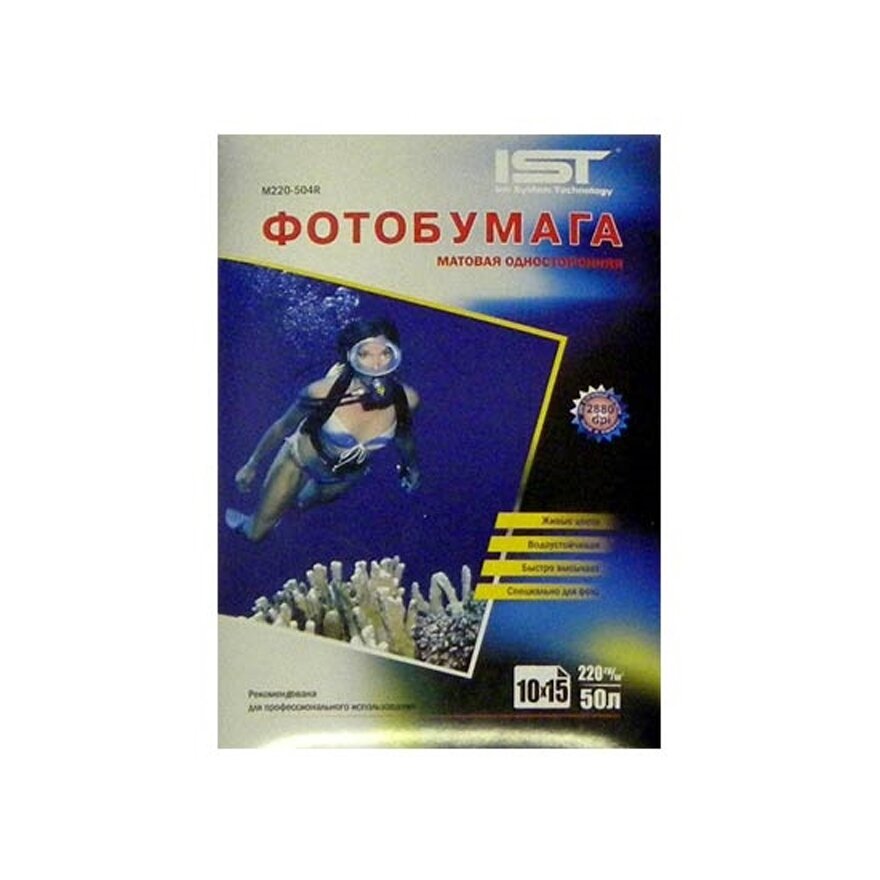 Фотобумага матовая 4R(10x15), 220 г/м2, ( M220-504R), 50л, односторонняя, картон IST