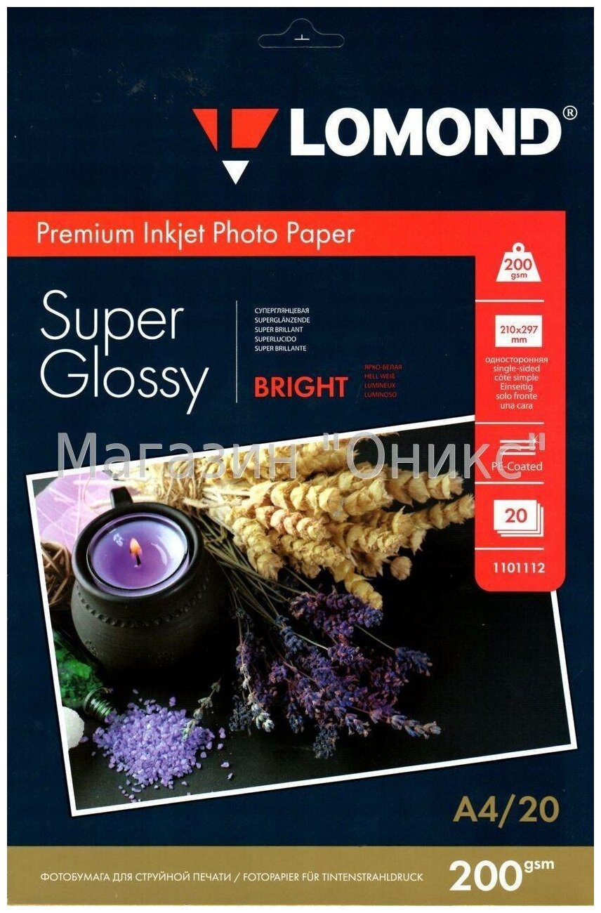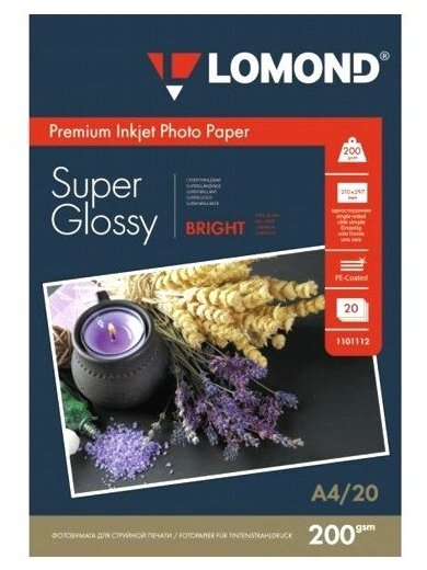 Купить Lomond 1101112 Фотобумага односторонняя яркий суперглянец А4, 200г м2, 20 листов