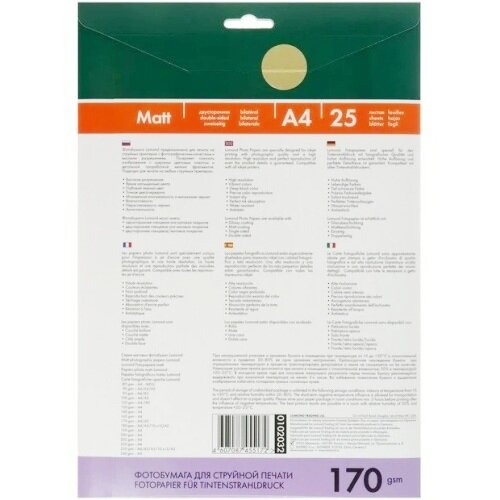 Фотобумага для струйной печати А4, 25 листов LOMOND, 170 г/м2, двусторонняя матовая