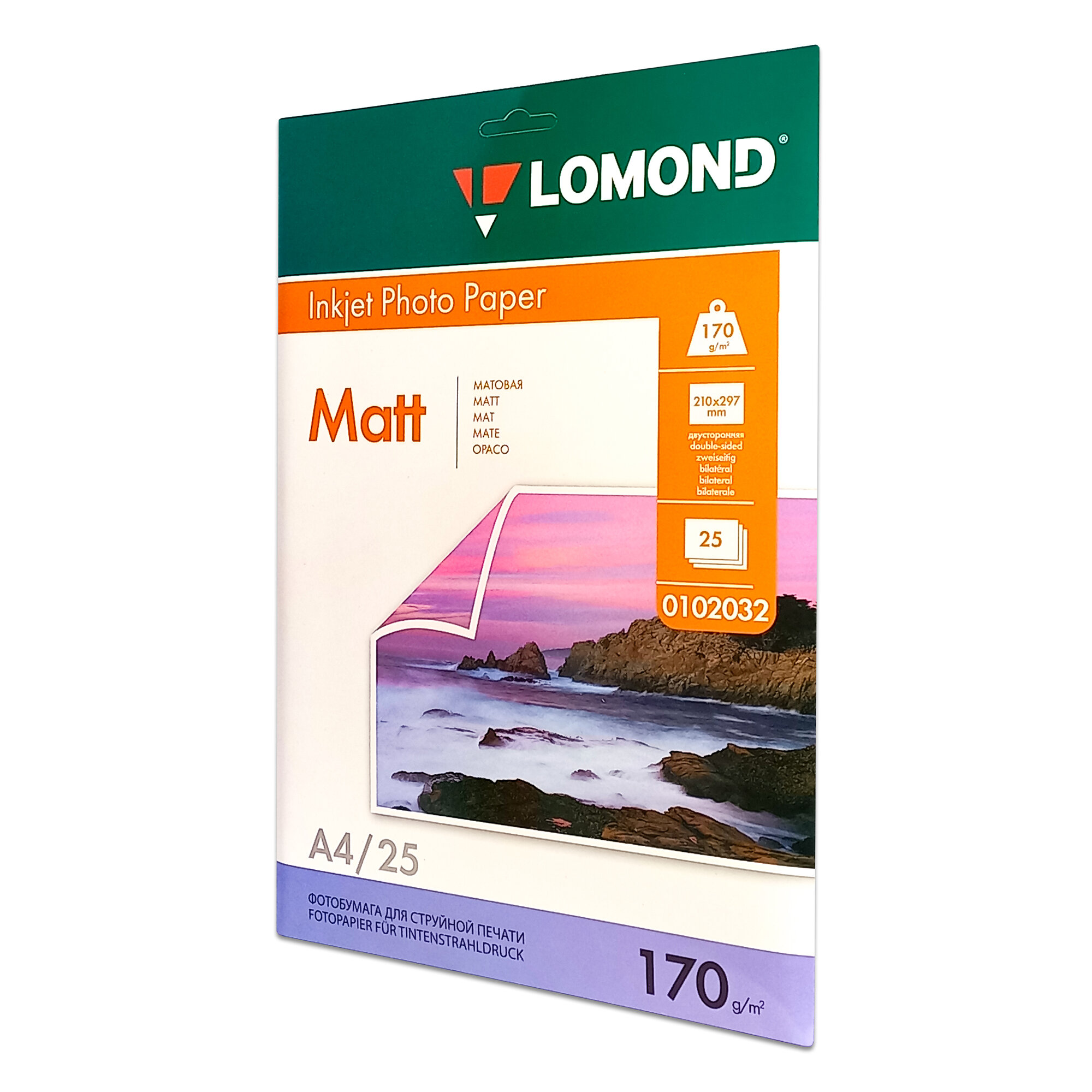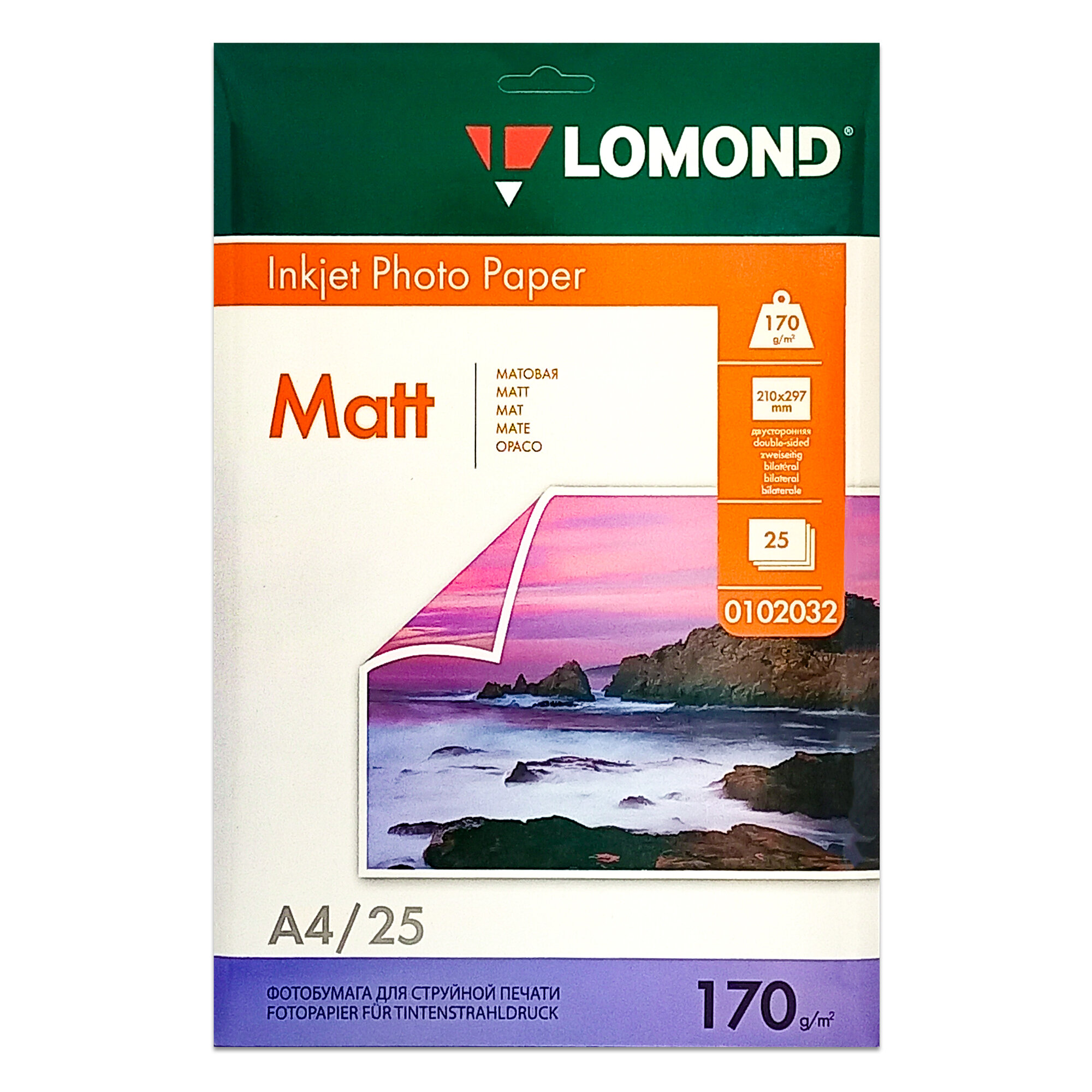 Lomond Фотобумага для струйной печати А4, 25 листов LOMOND, 170 г/м2, двусторонняя матовая (0102032)