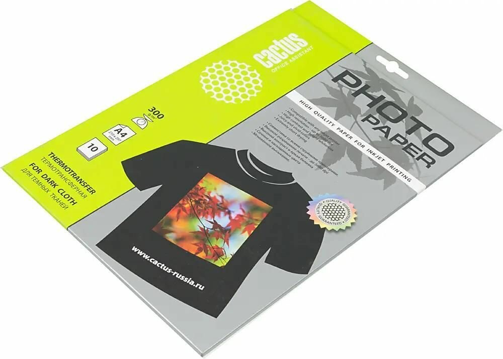 Термотрансфер Cactus CS-TD30010, А4, 300 г/м2, для темных тканей, 10 листов