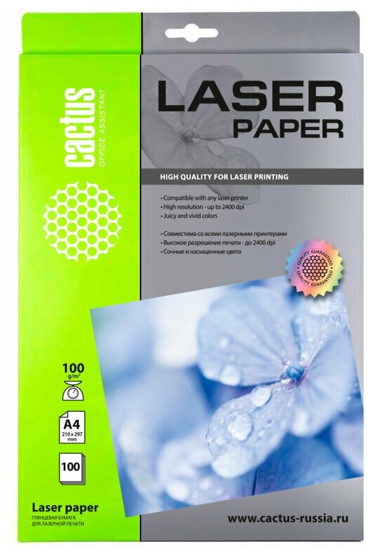 Бумага Cactus 100 г/м2, А4, глянцевая, для лазерной печати, 100л. CS-LPA4100100
