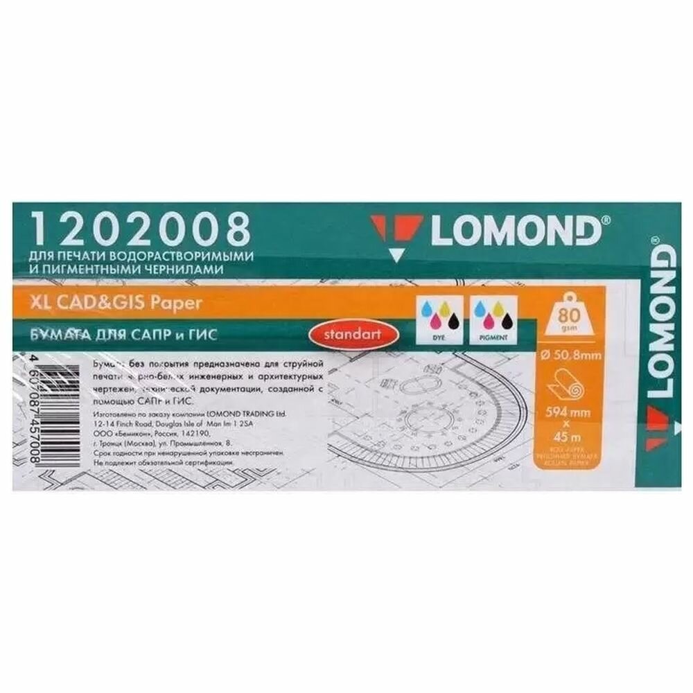 Бумага Lomond для САПР и ГИС "Стандарт" 594мм-45м/80г/м2/белый матовое для струйной печати втулка:50.8мм (2") (упак.:1рул)