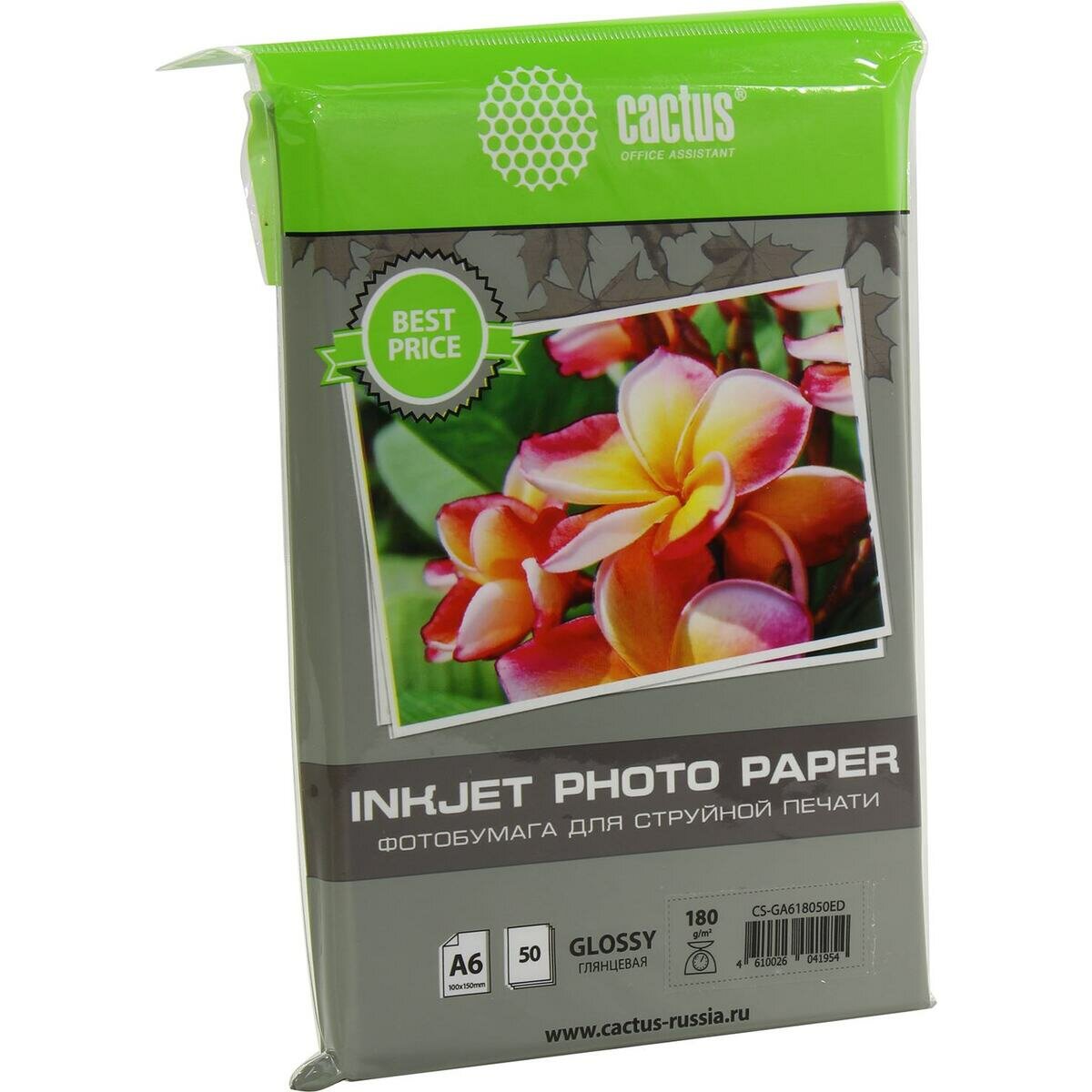 Фотобумага Cactus A6 10x15 глянцевая, 180г/м2, 50л, белая для струйной печати CS-GA618050ED
