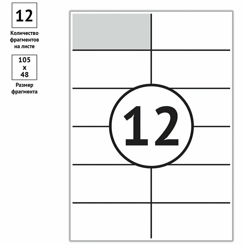 Этикетки самоклеящиеся А4 100 л. OfficeSpace, белые, 12 фр. (105*48), 70 г/м2