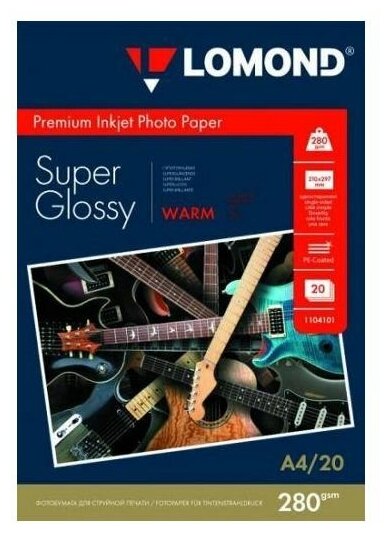 Lomond 1104101 (Super Glossy Warm)-односторонняя Суперглянцевая тепло-белая A4 280g/m, 20 лист.