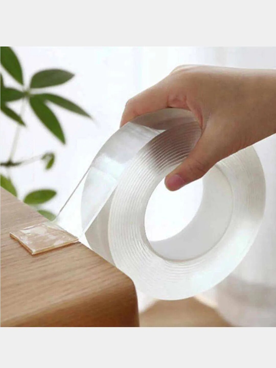 Клейкая двухсторонняя крепежная строительная монтажная лента скотч прозрачная Nano tape, 5м