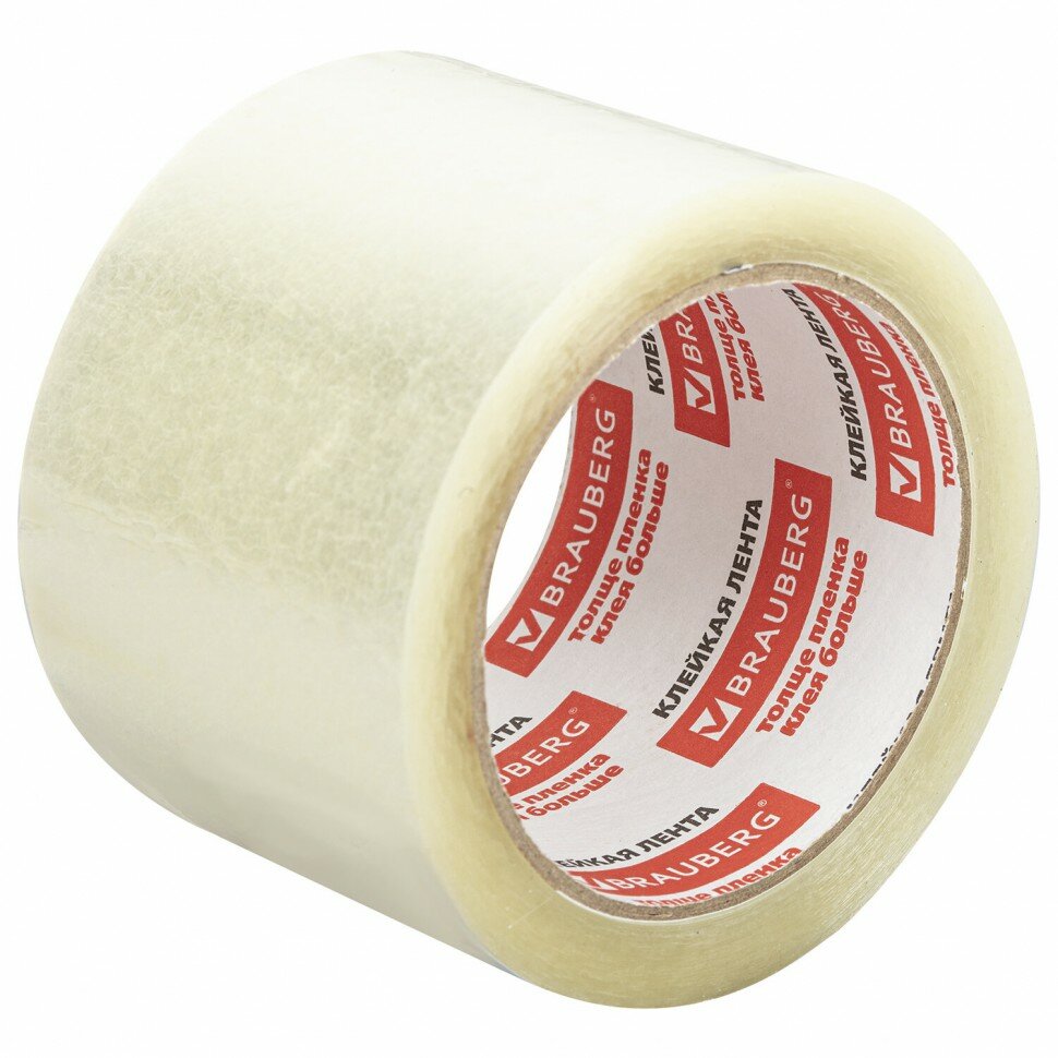 BRAUBERG Клейкая лента 72 мм х 66 м, упаковочная, прозрачная, гарантированная длина, 45 мкм, 440077