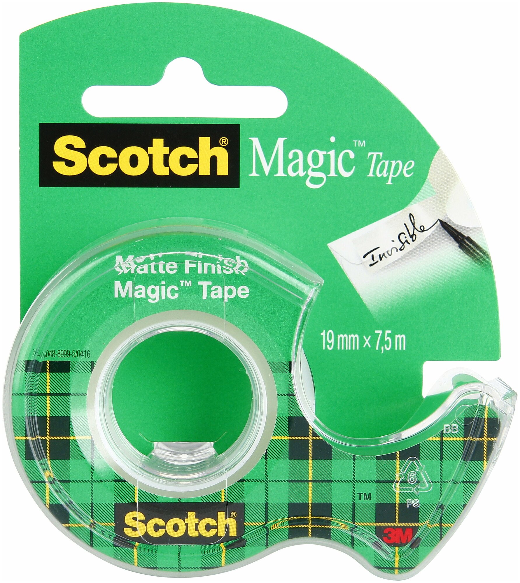 Клейкая лента канцелярская 3M Scotch Magic, невидимая, на мини-диспенсере, 19мм х 7.5 м