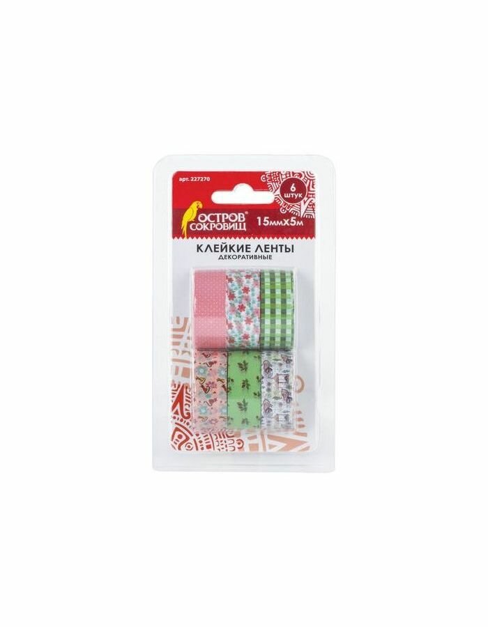 Клейкие ленты 15 мм х 5 м, декоративные, остров сокровищ, комплект 6 шт., ассорти №1, блистер, 227270 интересное: