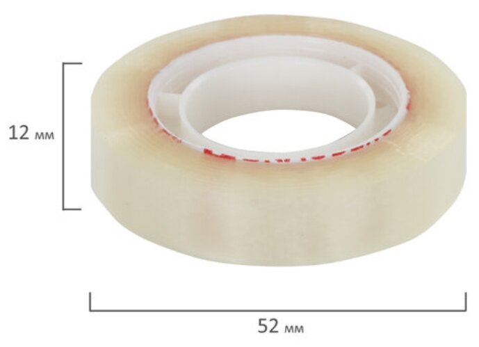 Клейкие ленты 12 мм х 33 м канцелярские BRAUBERG, комплект 12 шт., прозр., гарант. длина, 223123 - 1 шт.