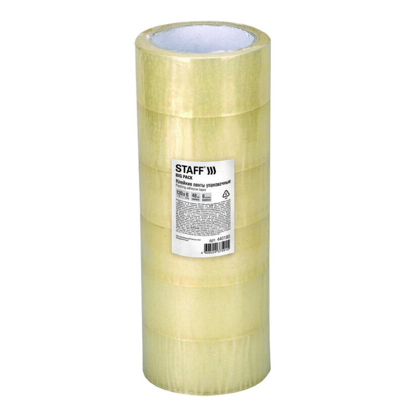 Клейкие ленты упаковочные 48 мм х 120 м, комплект 6 шт., прозрачные, 40 микрон, STAFF BIG PACK, 440180 (арт. 440180)