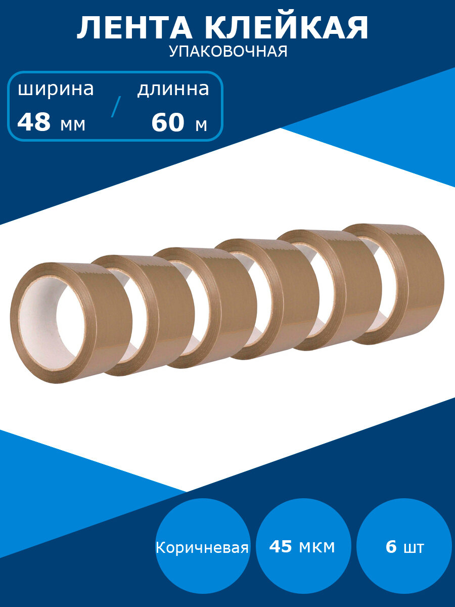 Клейкая лента упаковочная 48 мм х 60 м 60 мкм коричневая (6 штук в упаковке)