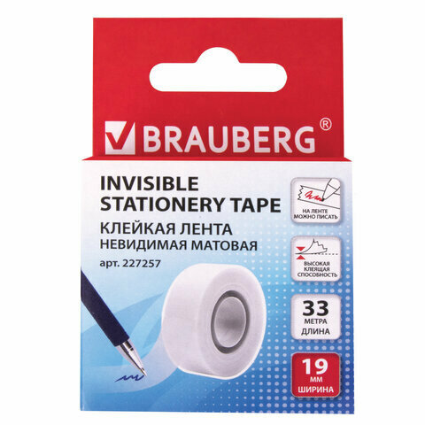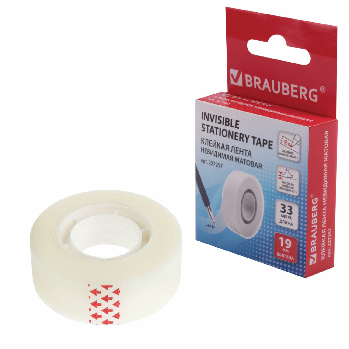Клейкая лента невидимая, матовая, 19 мм х 33 м, BRAUBERG, 227257 (цена за 1 ед.товара)
