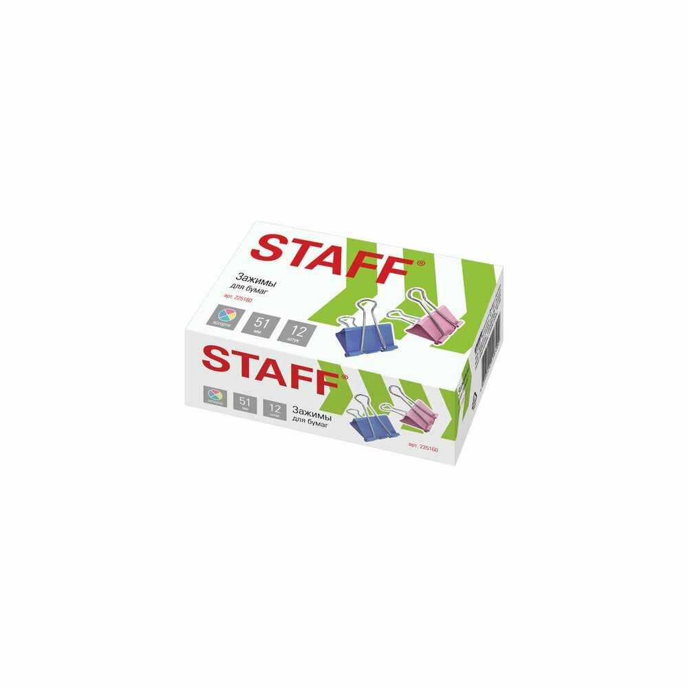 Зажимы для бумаг STAFF, комлпект 12 шт., 51 мм, на 230 листов, цветные, картонная коробка, 225160