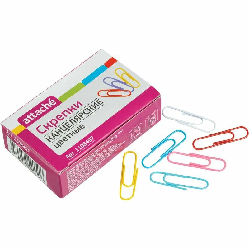 Купить Скрепки Attache цветные металлические с полимерным покрытием 33 мм 100 штук в упаковке, 1108497