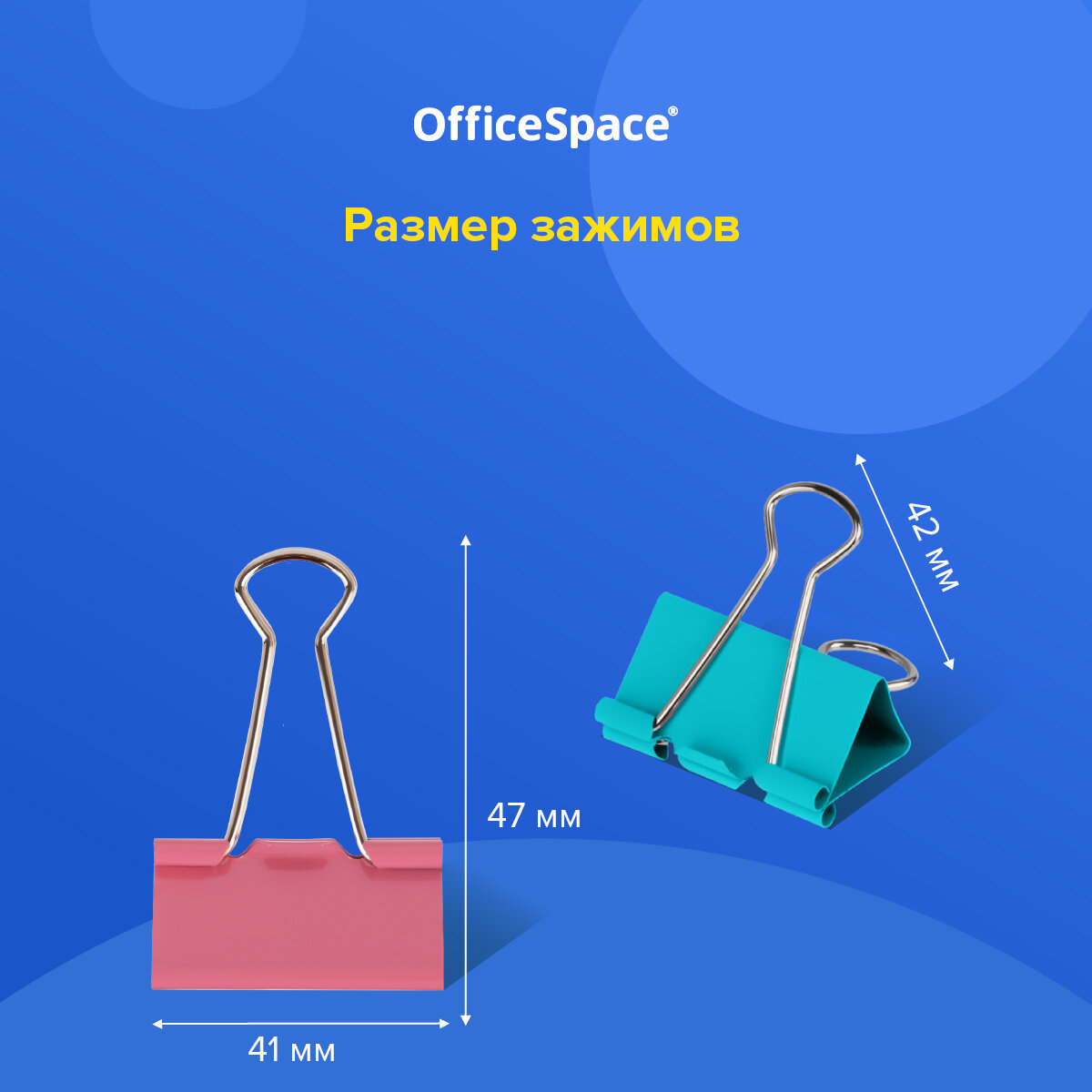 Зажимы для бумаг 41мм, OfficeSpace, 12шт., цветные, картонная коробка (арт. 257955)