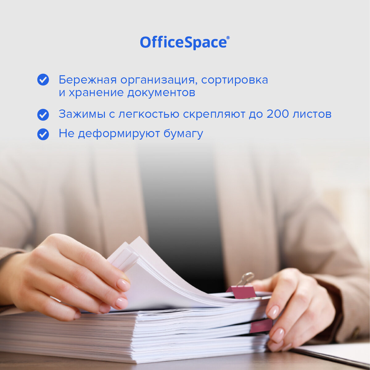 | Плюсы: | ширина зажима и толщина удерживаемой стопки бумаги