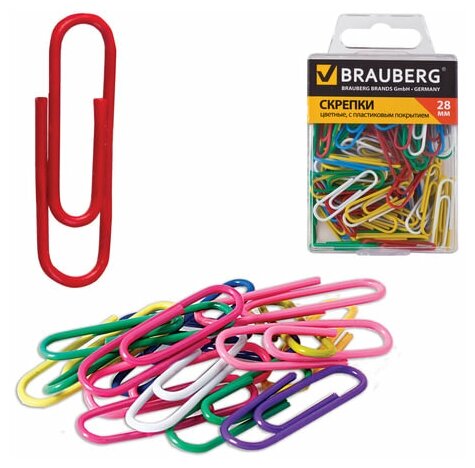 Скрепки цветные Brauberg 28 мм, 100 шт (221111)