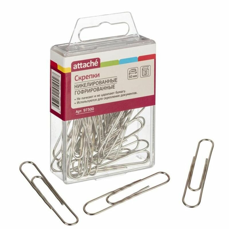 Скрепки Attache металлические никелированные гофрированные 50 мм (30 штук в упаковке), 97300