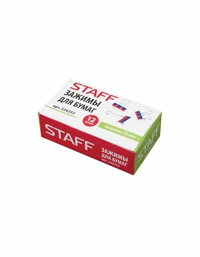 Купить Зажимы для бумаг STAFF, комплект 12 шт., 25 мм, на 100 листов, "Триколор", картонная коробка, 226252