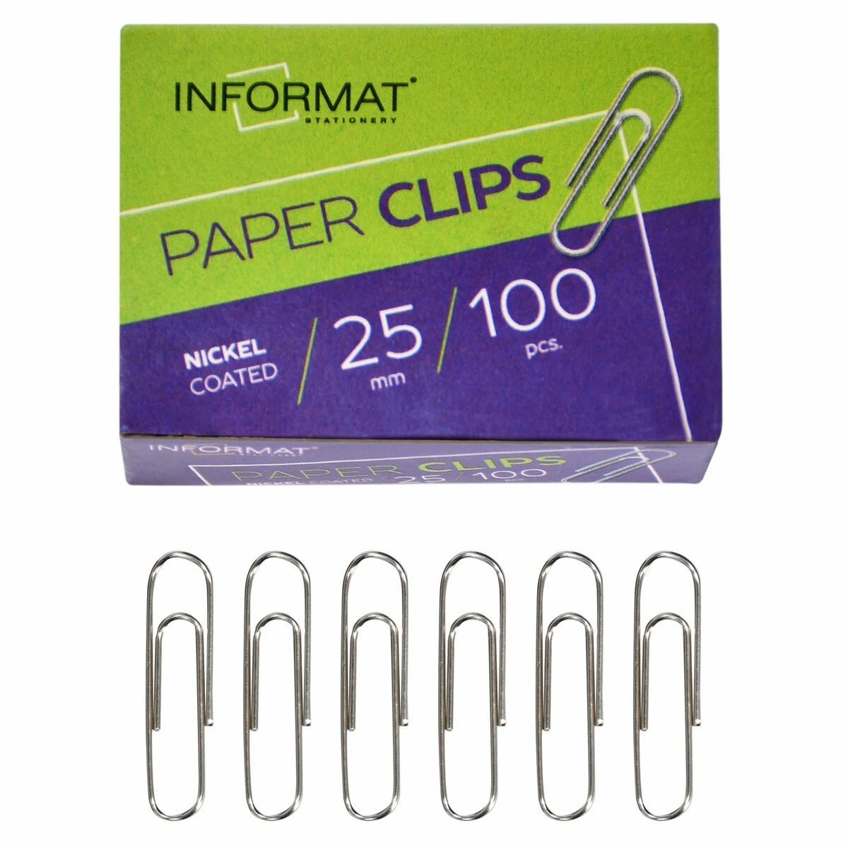 Купить Скрепки inформат (25мм, никелированные) картонная упаковка, 100шт.