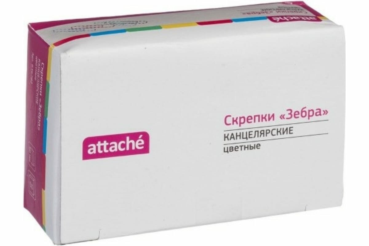 Скрепки Attache Зебра с полимерным покрытием,50 мм,разноцветные,50 шт/уп